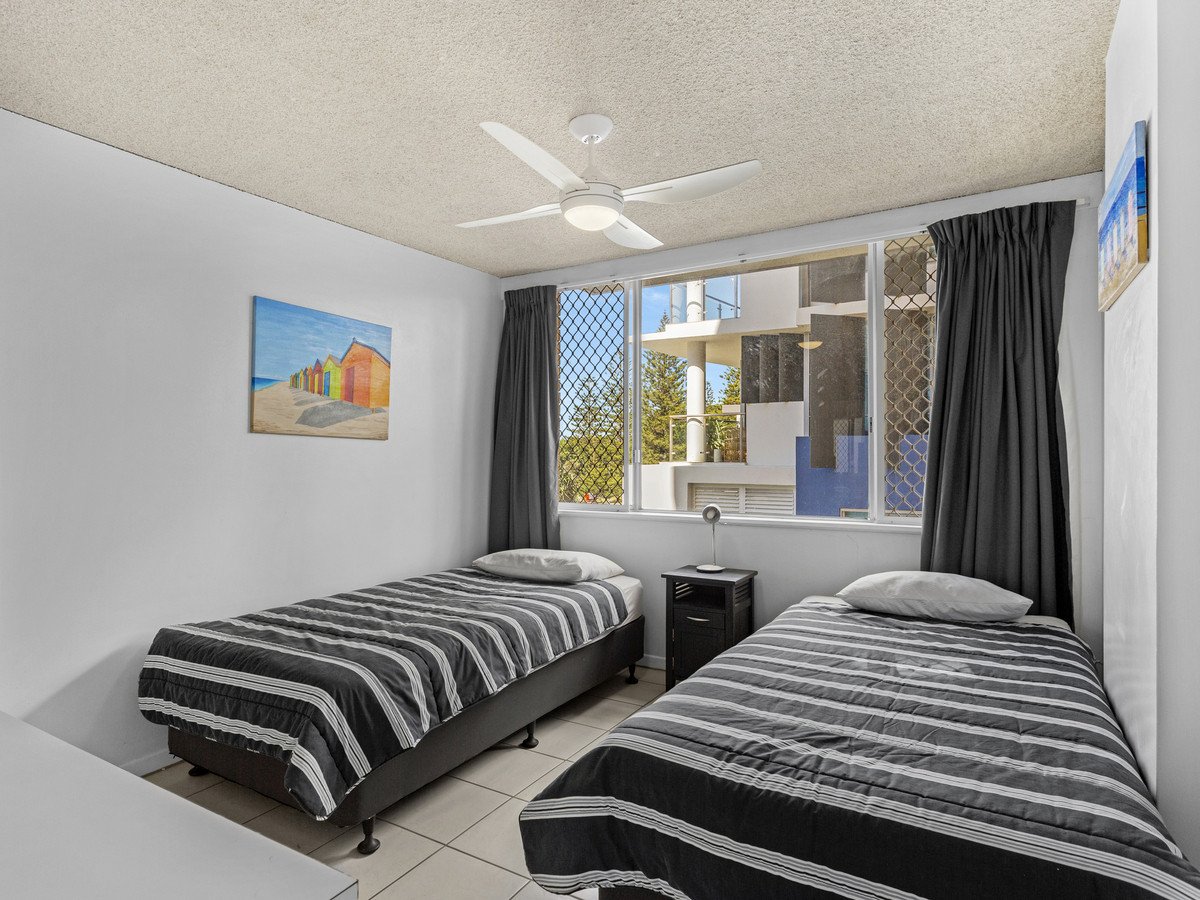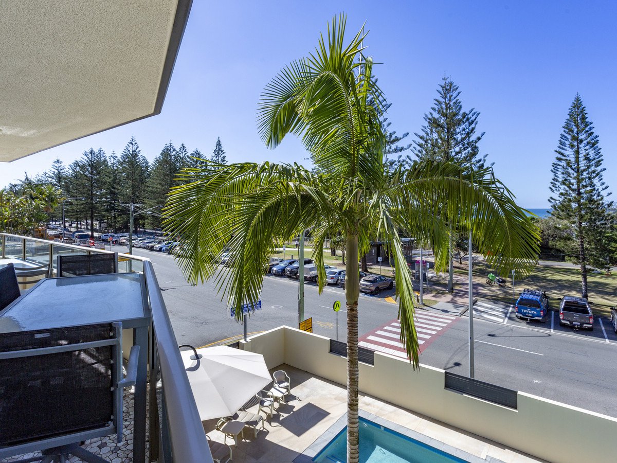 Perched on the third floor and easily accessible via a convenient lift, the apartment features three spacious bedrooms, each equipped with built-in wardrobes, ensuring ample storage for your beach essentials. The expansive bathroom offers a combined laundry for added convenience, while a separate toilet provides extra privacy. The heart of the home is the well-equipped kitchen, boasting generous bench space, ample cupboards, and a dishwasher, making meal preparation a breeze. The open plan living and dining area flows effortlessly onto a large balcony, where you can unwind and soak in the breathtaking views of Burleigh Beach.